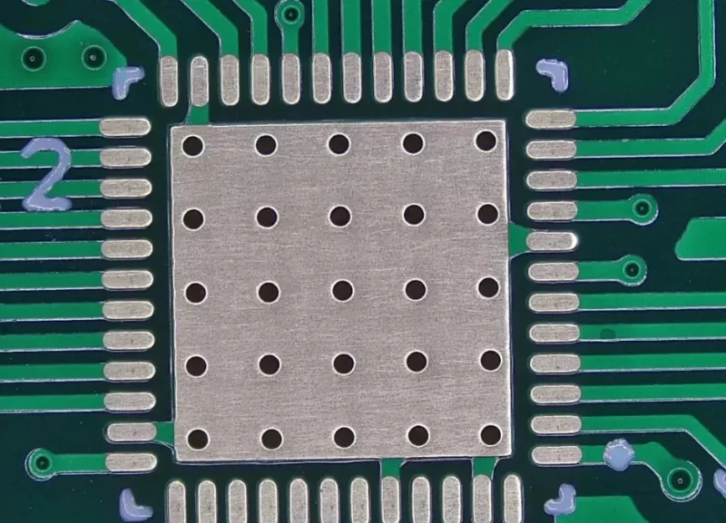 1. Reduce Thermal Resistance: Chips (especially with pads on the bottom, such as QFN, DFN, and BGA) have high thermal resistance to the air. Via arrays conduct heat to a large area of copper foil on the bottom or inner layers of the PCB, reducing the total thermal resistance significantly from the joints to the environment.